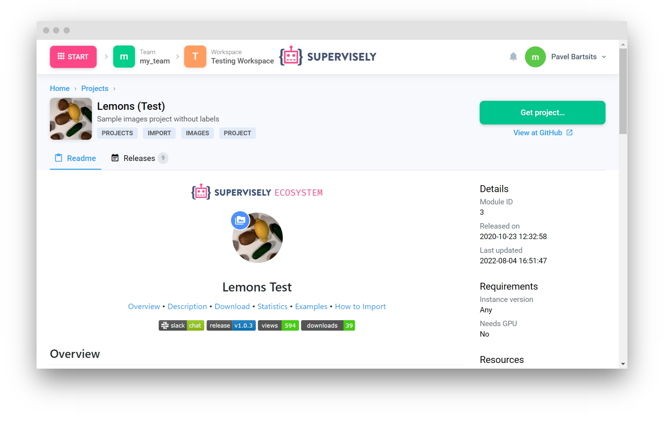 Get Lemons (Test) project from ecosystem. Lemons (Test) is an example project with 6 images of lemons and kiwi fruits.