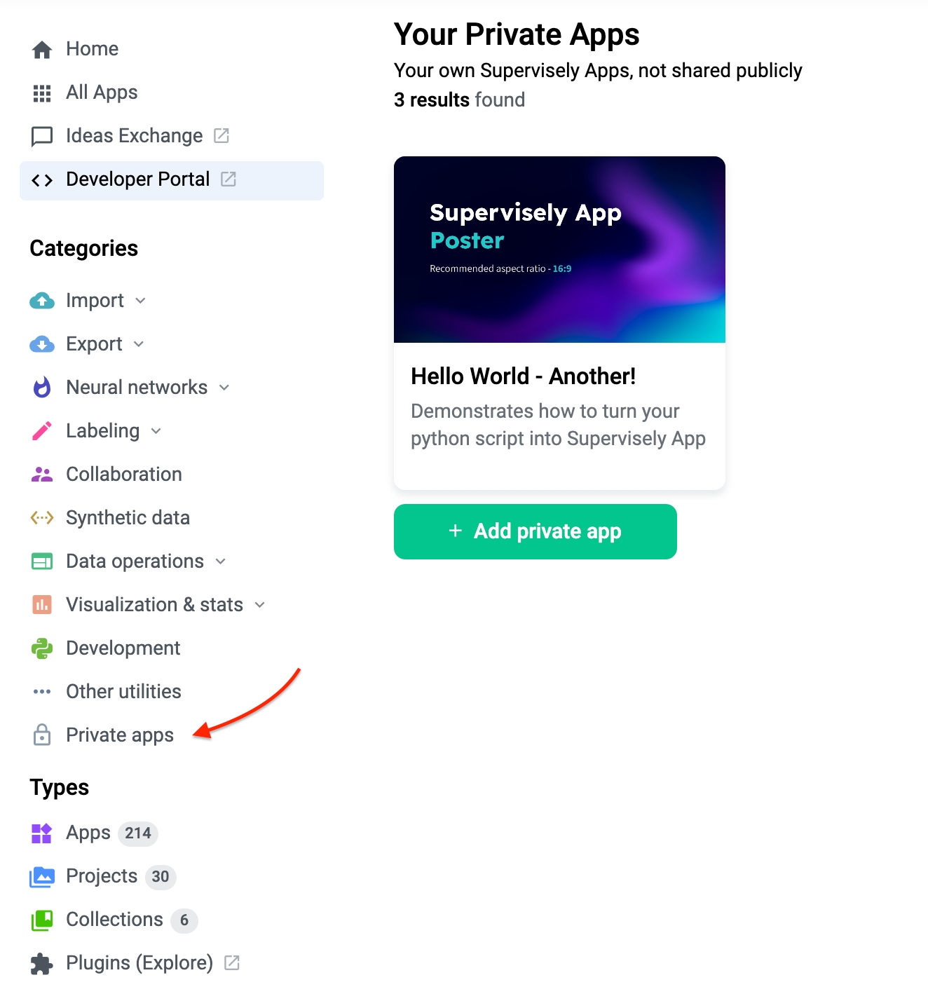 🌎 Public apps are available on all private Supervisely Instances and in Community Edition. The guidelines for adding public apps will be covered in other tutorials.