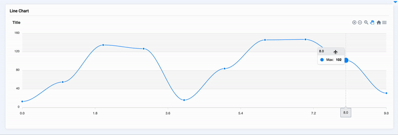 The widget allows for customization of the chart title, axis titles, and color scheme. `Linechart` also supports zooming, panning, and downloading the chart as png, svg, or csv. Additionally, it can detect clicks on data points and respond to them through Python code