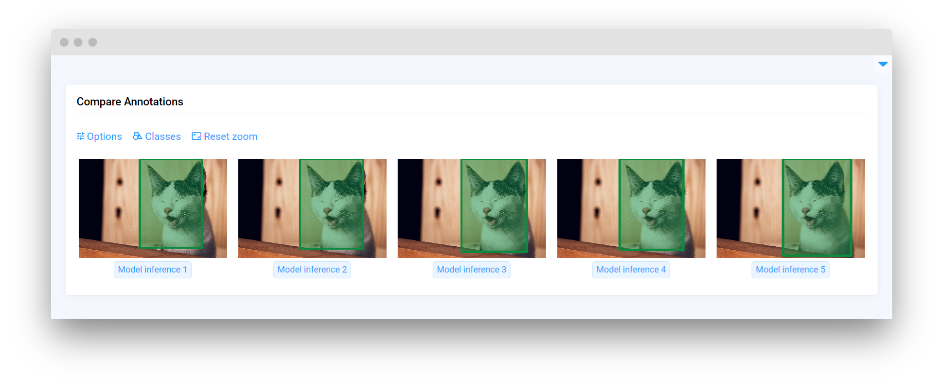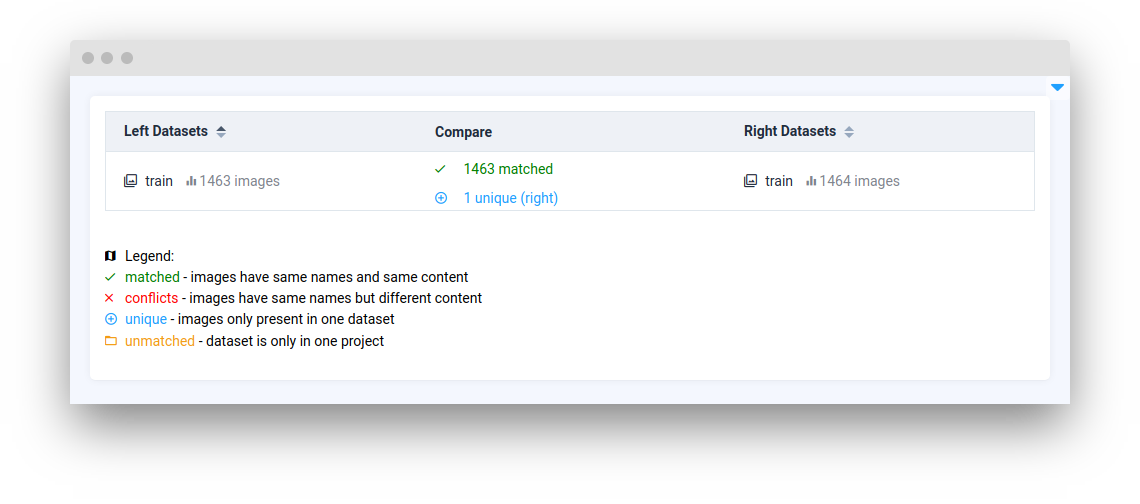 <table data-card-size="large" data-view="cards"><thead><tr><th></th><th></th><th></th><th data-hidden data-card-target data-type="content-ref"></th></tr></thead><tbody><tr><td><strong>Match Datasets</strong></td><td><img src="https://1972929262-files.gitbook.io/~/files/v0/b/gitbook-x-prod.appspot.com/o/spaces%2F2ZRtnNbqSpWk5uCfyE1A%2Fuploads%2Fgit-blob-c4498d337df58286558ee29b5f3a2adcca18f436%2Fwidget-compareDatasets.png?alt=media" alt=""></td><td><mark style="color:purple;">Intended to compare and match datasets. Provides functionality for users to see differences or similarities between various sets of data, which could be essential for tasks such as data cleaning, merging datasets, or identifying discrepancies</mark></td><td><a href="compare-data/matchdatasets">matchdatasets</a></td></tr><tr><td><strong>Match Tag Metas</strong></td><td><img src="https://1972929262-files.gitbook.io/~/files/v0/b/gitbook-x-prod.appspot.com/o/spaces%2F2ZRtnNbqSpWk5uCfyE1A%2Fuploads%2Fgit-blob-d983641bc8fd96801a1f5fb3f8061a949bbb1dbd%2Fwidget-compareTagMetas.png?alt=media" alt=""></td><td><mark style="color:purple;">Compare and match tag metas based on their properties. Widget is used to describe data or objects within a dataset, making it easier to filter and organize information based on those descriptive tags</mark></td><td><a href="compare-data/matchtagmetas">matchtagmetas</a></td></tr><tr><td><strong>Match Obj Classes</strong></td><td><img src="https://1972929262-files.gitbook.io/~/files/v0/b/gitbook-x-prod.appspot.com/o/spaces%2F2ZRtnNbqSpWk5uCfyE1A%2Fuploads%2Fgit-blob-58c2c8126791a07ff2bc4916da66706c0a7c8045%2Fwidget-compareClassObjects.png?alt=media" alt=""></td><td><mark style="color:purple;">Compare and match object classes based on their properties. This widget would help in ensuring consistency and accuracy when classifying and comparing objects</mark></td><td><a href="compare-data/matchobjclasses">matchobjclasses</a></td></tr><tr><td><strong>ClassBalance</strong></td><td><img src="https://1972929262-files.gitbook.io/~/files/v0/b/gitbook-x-prod.appspot.com/o/spaces%2F2ZRtnNbqSpWk5uCfyE1A%2Fuploads%2Fgit-blob-b884bf0f33acccc402a1c99a72ac900ad20e0745%2Fwidget-classBalance.png?alt=media" alt=""></td><td><mark style="color:purple;">Shows the balance of different classes within a dataset with rows and bar charts in a table view. This is particularly useful in machine learning to ensure that a model is not biased due to imbalanced training data</mark></td><td><a href="compare-data/classbalance">classbalance</a></td></tr><tr><td><strong>CompareAnnotations</strong></td><td><img src="https://1972929262-files.gitbook.io/~/files/v0/b/gitbook-x-prod.appspot.com/o/spaces%2F2ZRtnNbqSpWk5uCfyE1A%2Fuploads%2Fgit-blob-c72247b05a1777ec680b9ecabf9323cb26373099%2Fdefault.png?alt=media" alt="" data-size="original"></td><td><mark style="color:purple;">Compare various annotations on a single image. This is particularly useful for comparing the output of different machine learning models inferences on the same piece of visual data</mark></td><td><a href="compare-data/compareannotations">compareannotations</a></td></tr></tbody></table>