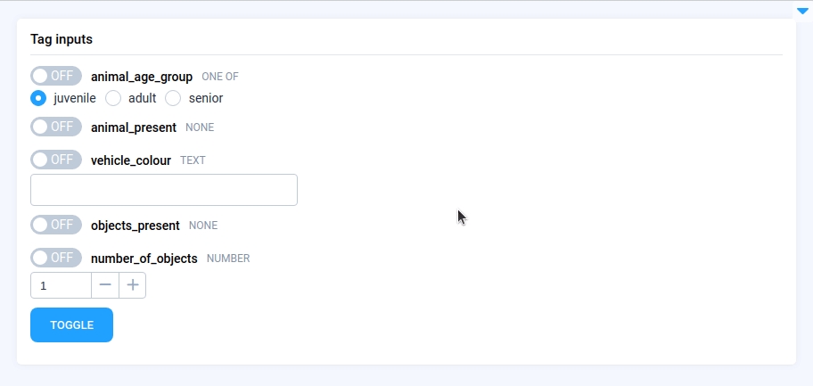 InputTag widget in Supervisely is a user interface element that allows users to add or remove tag labels to items (images, videos, volumes, and point clouds). It uses TagMeta of the current project and allow to use them easily in Supervisely apps. InputTag widget is a valuable tool for improving the organization and efficiency of Supervisely apps.