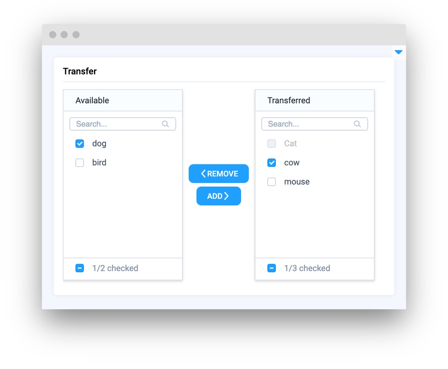 Widgets that facilitate the selection of options from a set, which could include list boxes or radio buttons