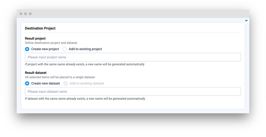 This component is used to select the destination project and dataset where the user intends to move or copy data