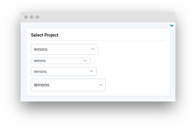 **`SelectProject`** widget in Supervisely is a dropdown menu that allows users to select a project from a list of available projects in current workspace. Clicking on it can be processed from python code. This widget is particularly useful when working with multiple projects in Supervisely and allows to easily switch between projects in applications.