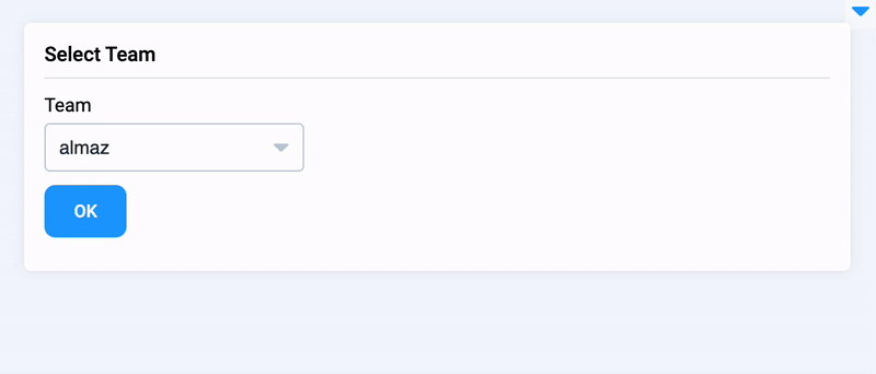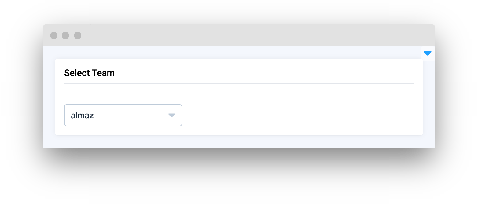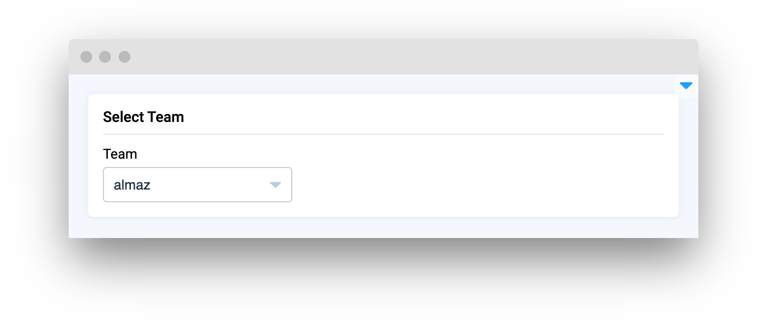 **`SelectTeam`** widget in Supervisely is a dropdown menu that allows users to select a team from a list of available teams. Clicking on it can be processed from python code. This widget is particularly useful when working with multiple teams in Supervisely and allows to easily switch between team in applications.