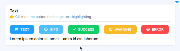 Button widgets for each type of text message: text, info, success, warning, errorInitialize Container widget