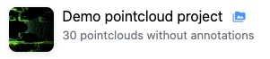 Datasets are the second level folders inside the project, they host subsets of point cloud scenes, related photo context (images) and annotations.